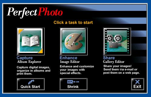 Minimum System Requirements for PerfectPhoto: * 133 MHz Pentium processor (or higher) * 32 MB RAM * Available hard-disk space Minimum installation: 20 MB Default (Program files, Sample images, Retouch Navigation data): 90 MB All (Program files, Sample images, Retouch Navi. data, Online document, Templates, File Transfer Program): 200 MB * VGA graphics card (640 x 480, 256 colors), XGA graphics card (1024 x 768, 64,000 colors) is recommended. * Microsoft Windows compatible CD-ROM drive for install * Microsoft Windows compatible mouse * Windows 98, Windows 95, Windows NT 4.0 (Intel version) Note: With a faster processor, more free disk space, more RAM, and a faster modem, you can enjoy better performance. PerfectPhoto may run on other operating systems and be translated into other languages, but it is only supported in the English versions of Windows 98, Windows 95, and Windows NT 4.0.